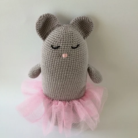 Produktet: Detaljeret hækleopskrift på balletmusen Mimi, hvor der både medfølger en beskrivelse af hvordan du syr et tylskørt og en opskrift på det hæklede skørt.