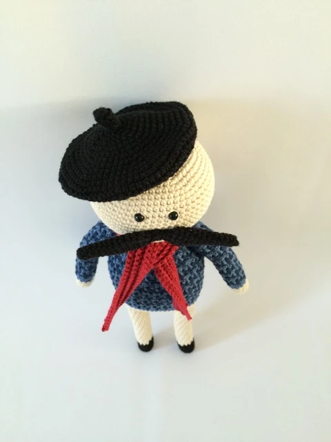 Produktet: Detaljeret hækleopskrift på franskmanden Pierre. Pierre bliver ca. 30 cm lang.