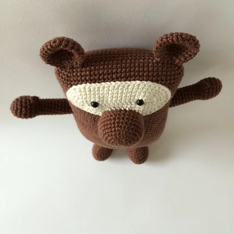 Produktet: Detaljeret hækleopskrift på bamsen Toby. Toby bliver ca. 25 cm høj.