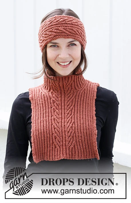 Strikket pandebånd og hals i DROPS Merino Extra Fine. Arbejdet strikkes med helpatent.