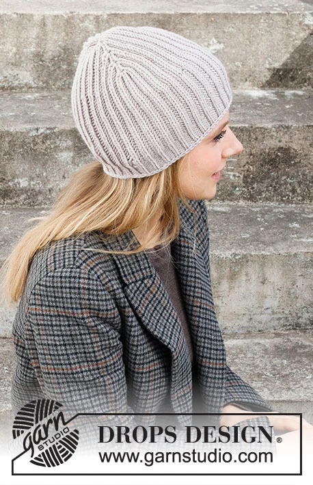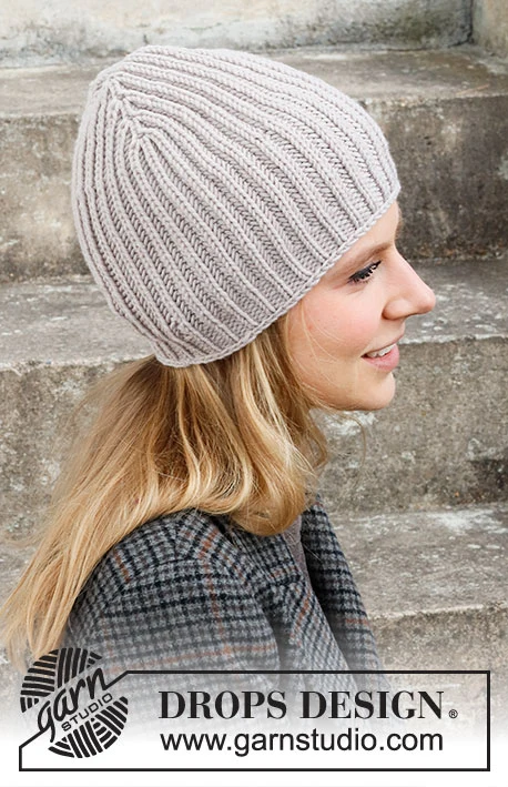 Strikket hue med helpatent i DROPS Big Merino. Størrelse one size.