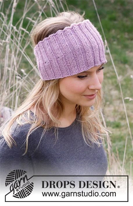 Strikket pandebånd med rib i DROPS Alaska. Arbejdet strikkes frem og tilbage med forkortede pinde.