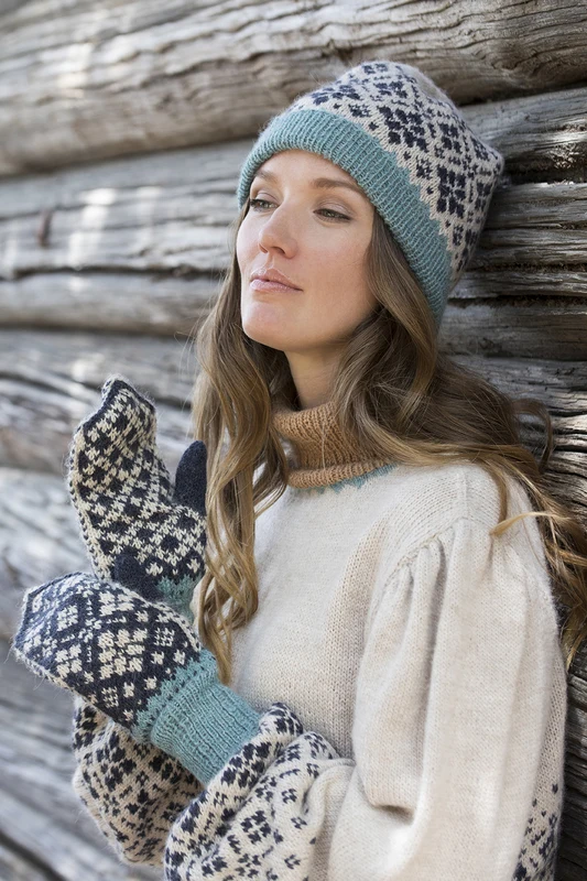 Strikket hue og handsker i Dale Alpakka Forte. Onesize.