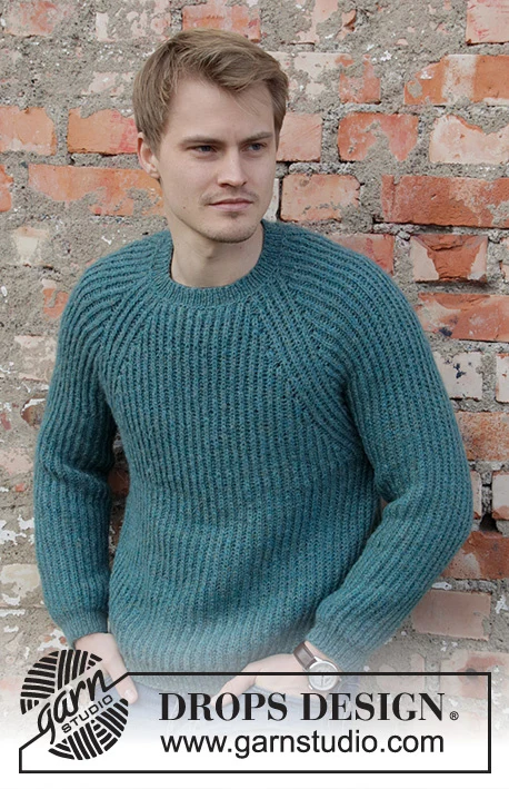 Strikket bluse med raglan til herre i DROPS Sky. Arbejdet strikkes ovenfra og ned med helpatent. Størrelse S - XXXL.