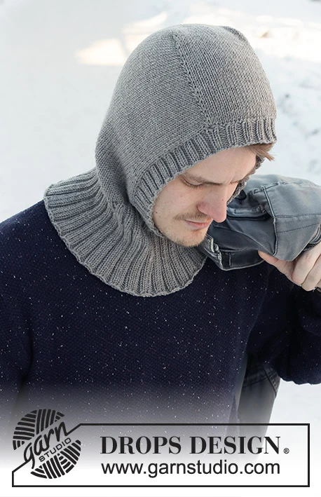 Strikket hue / elefanthue til herre i DROPS Merino Extra Fine. Arbejdet strikkes ovenfra og ned i glatstrik med kanter i rib.