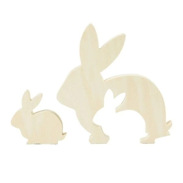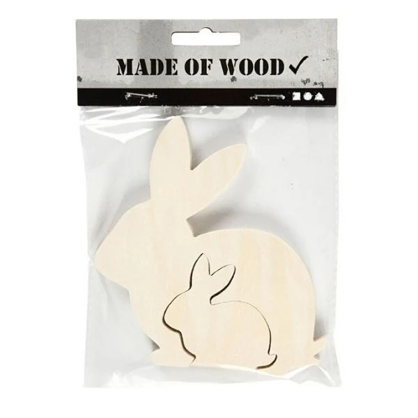 Med 2i1-figuren får du to søde påskeharer i lyst træ.