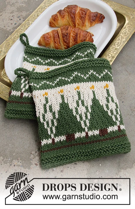 Strikket grydelap med nordisk mønster til jul i DROPS Paris. Tema: Jul.
