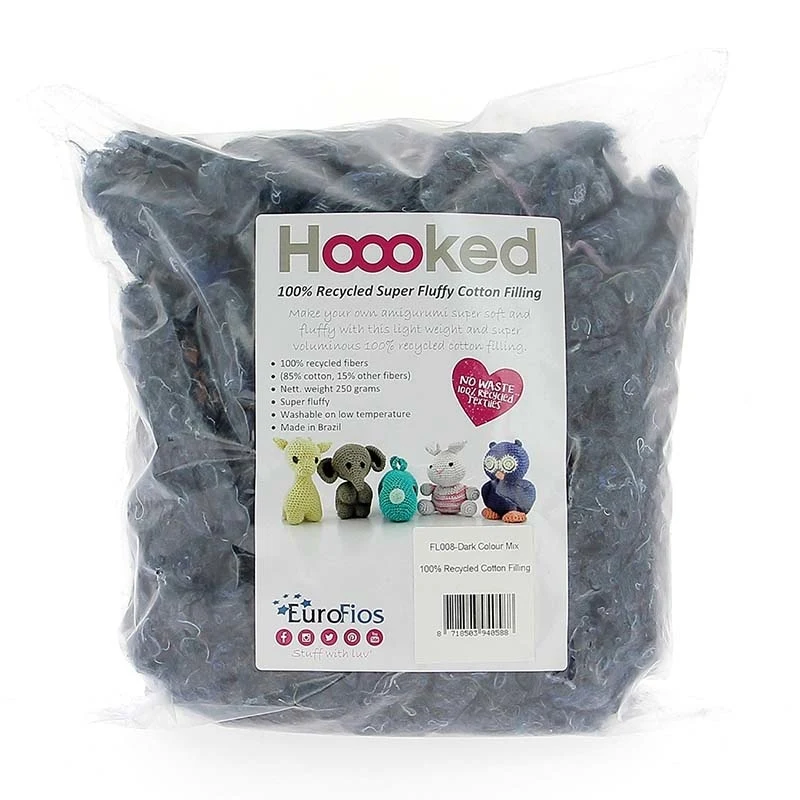 Denne pose fra Hoooked er lavet af 100% miljøvenligt og genanvendt bomuldsfyld fra tekstilrester fra modeindustrien. Det super bløde og luftige fyld er produceret på en bæredygtig måde med respekt for naturen. Det kan vaskes i maskine ved lav temperatur. Hver pose vejer ca. 250 gram.
