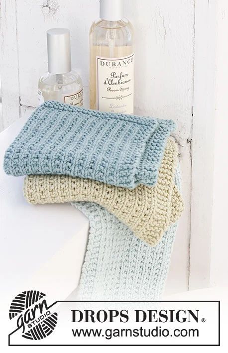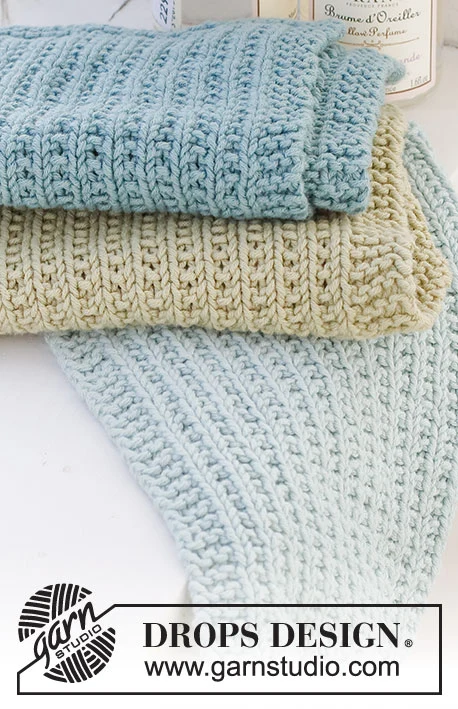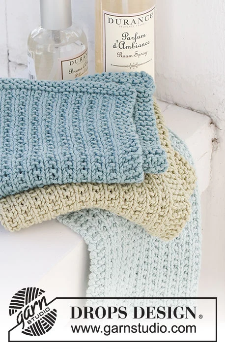 Strikkede klude med strukturmønster i DROPS Safran.
