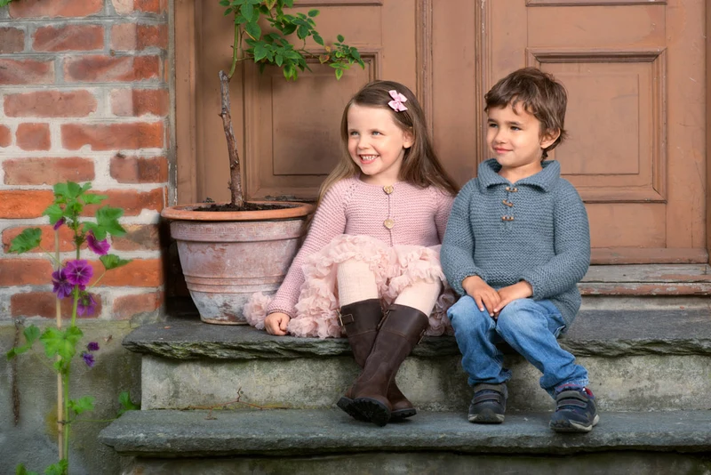 Jakke strikket i Dale Lerke Pluss. Størrelse 2 - 12 år.