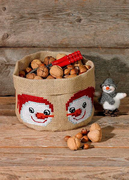 Broderikit Kurv m/snemænd Ø21
