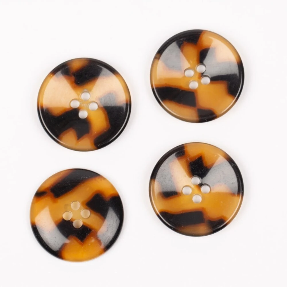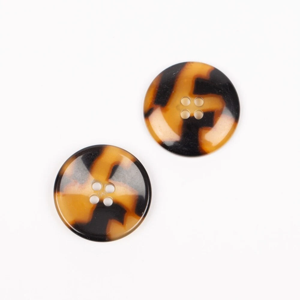 Denne skinnende polyesterknap i skildpaddemønster kombinerer lyse og mørkebrune nuancer, hvilket giver et klassisk og tidløst look. Med en diameter på 20 mm er den perfekt til cardigans, jakker og andre tøjprojekter.