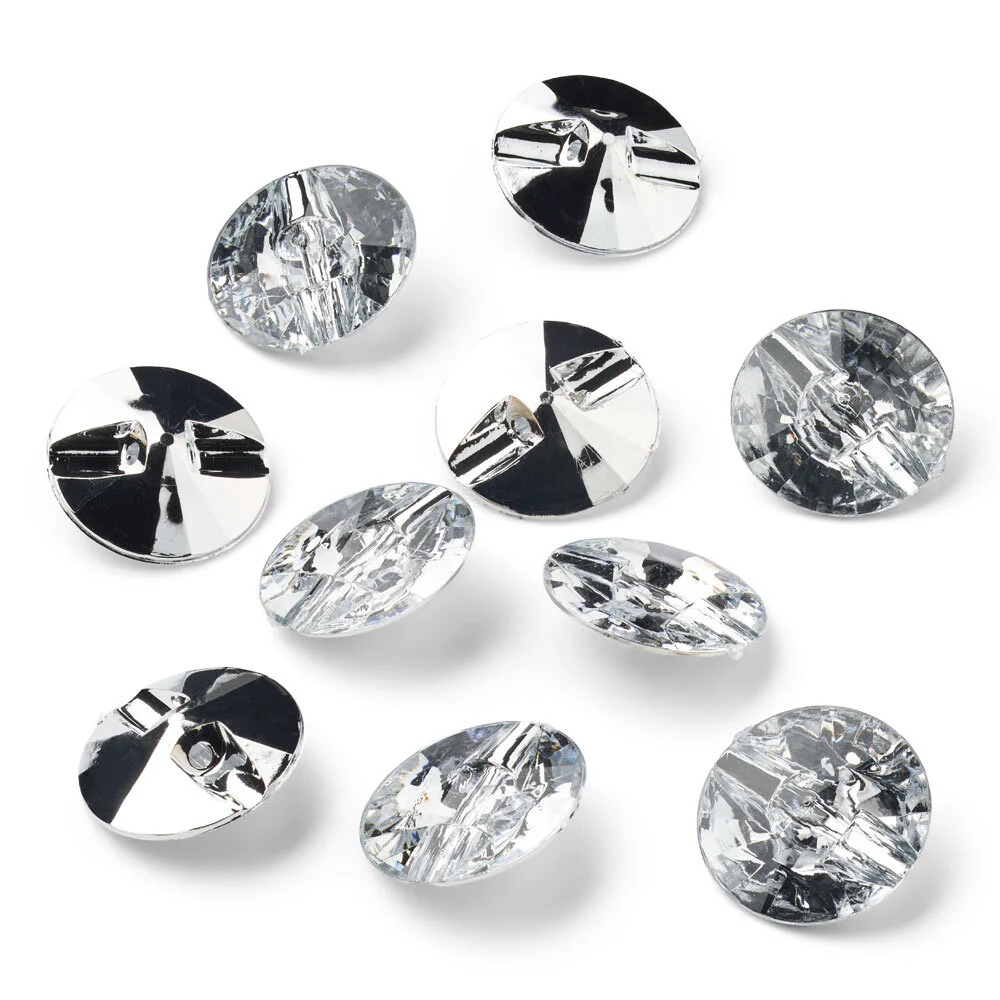 Disse klare krystalknapper fra LindeHobby kombinerer funktion og elegance i ét produkt. Knapperne måler 20 mm i diameter og leveres i pakker med 10 stk. Den facetslebne overflade giver et flot lysspil, mens den glatte bagside med skjult syhul sikrer et pænt, ubrudt udtryk på forsiden.