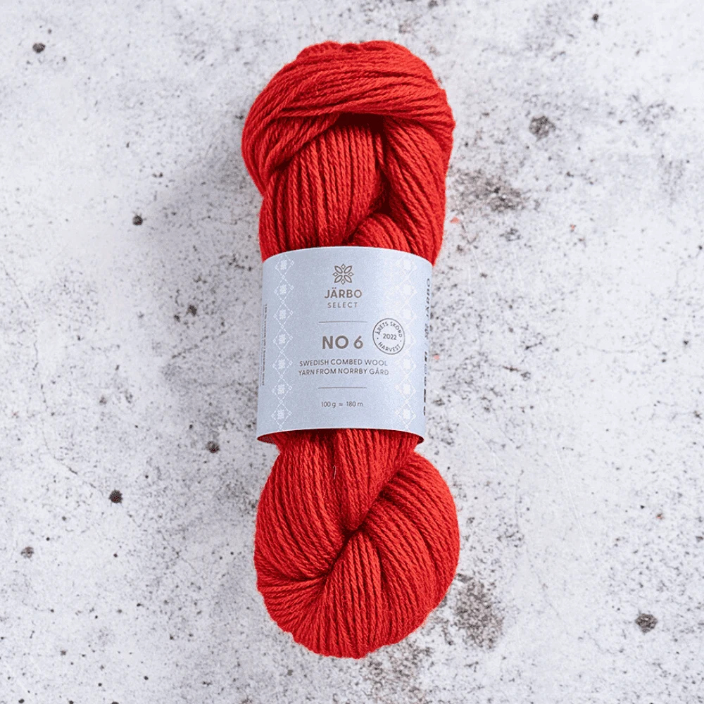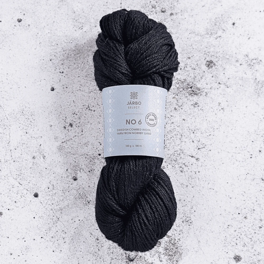 Järbo Select No 6 er et fint kæmmet uldgarn lavet af svensk uld fra Dorset-får. Ulden kommer fra fårene på Norrby Gård i Västmanland og er nænsomt spundet hos Klippans Yllefabrik. Garnet har en behagelig og glat tekstur, der gør det velegnet til både strikning og hækling. Farvepaletten er desuden inspireret af Sveriges landskaber.