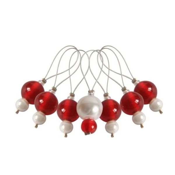 Du får 6 flotte maskemarkører i rød og hvid, og 1 unik maskemarkør med en stor, rød perle.
