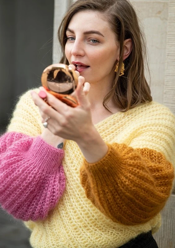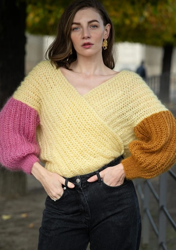 Molly har designet jakken med ærmer i forskellige farver, som skaber kontrast til resten af jakken. Super Kid Silk fås i mange forskellige farver, så du har gode muligheder for at skabe din egen unikke version af BittenJakken ved at vælge din egen farvekombination.