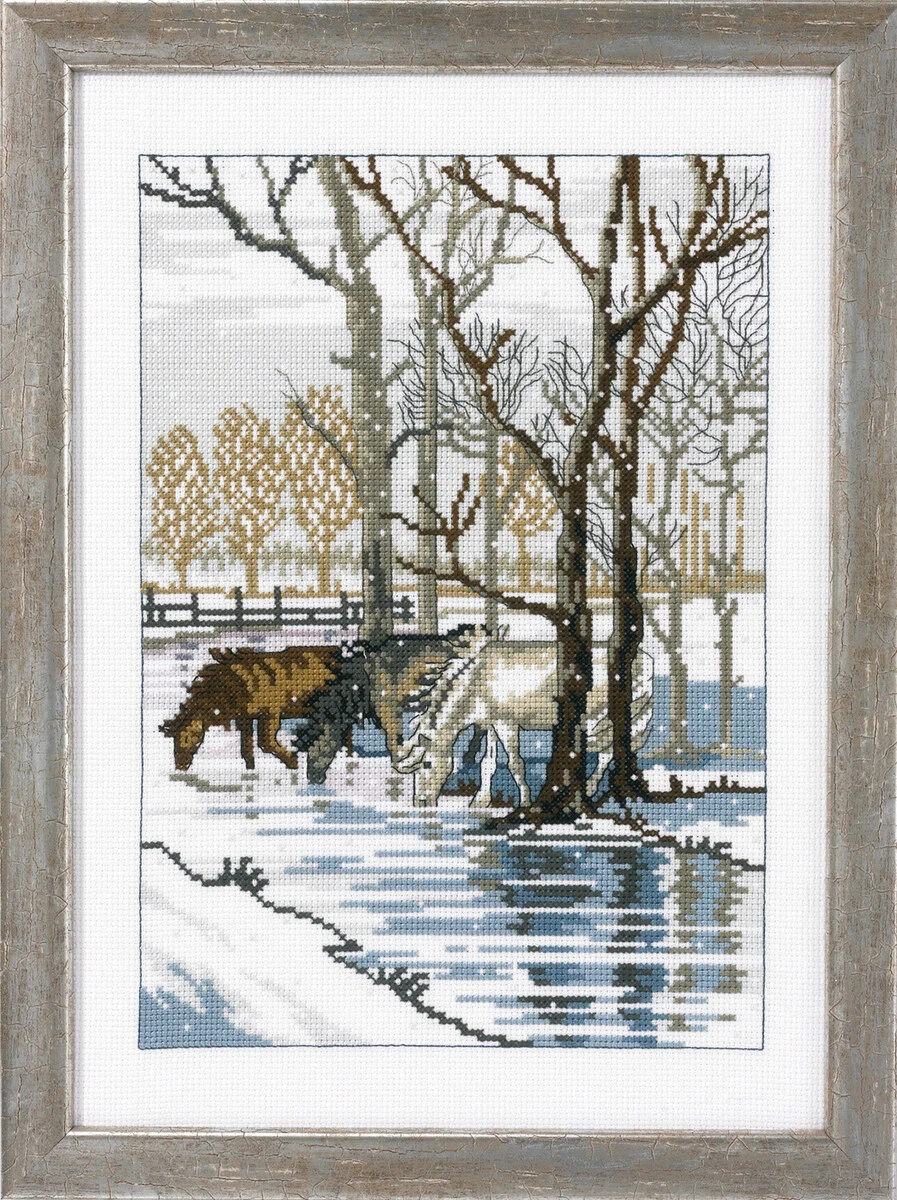 Broderikit 3 heste ved åen 35 x 25 cm R5797