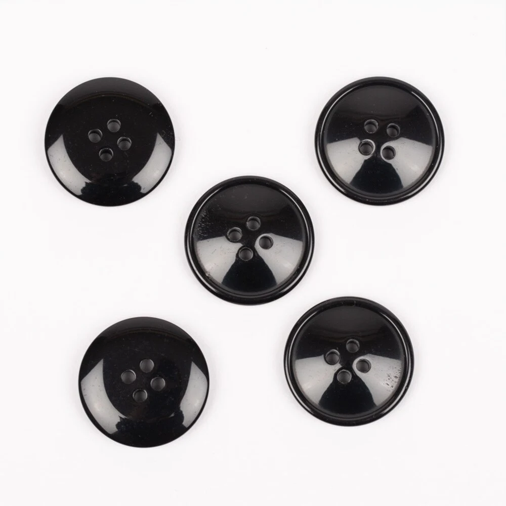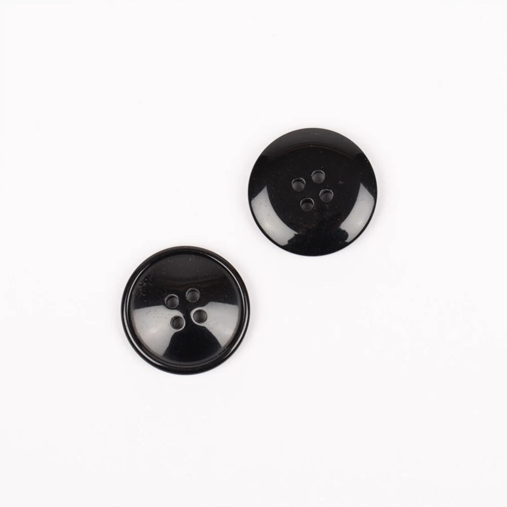 En elegant og skinnende polyesterknap i sort, perfekt til at tilføje et klassisk touch til dine projekter. Holdbar og stilfuld, ideel til cardigans, jakker eller andet tøj.