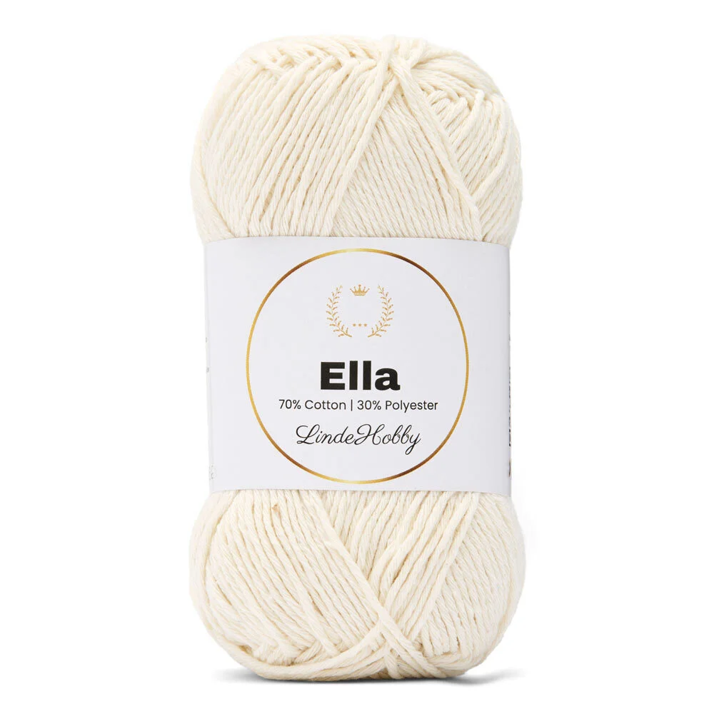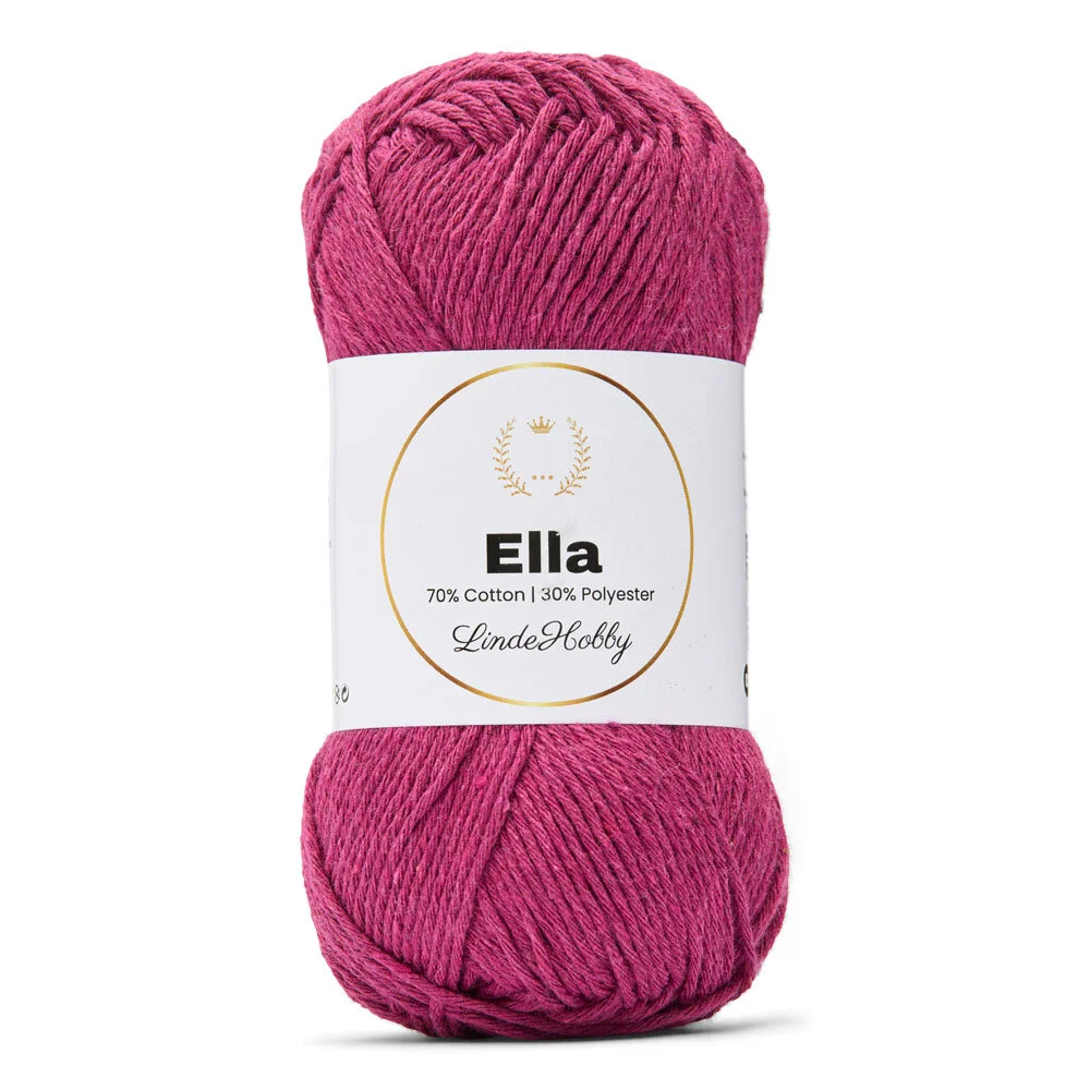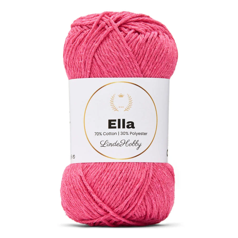 LindeHobby Ella 130 er et slidstærkt og alsidigt garn, der kombinerer 70% bomuld med 30% polyester. Denne blanding giver garnet en blød og naturlig fornemmelse fra bomulden, samtidig med at polyesteren tilfører ekstra styrke, farveægthed og formstabilitet. Garnet fås i flere smukke farver, som holder sig flotte vask efter vask – perfekt til projekter, der skal være både praktiske og dekorative.