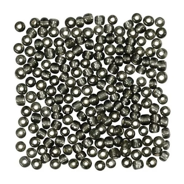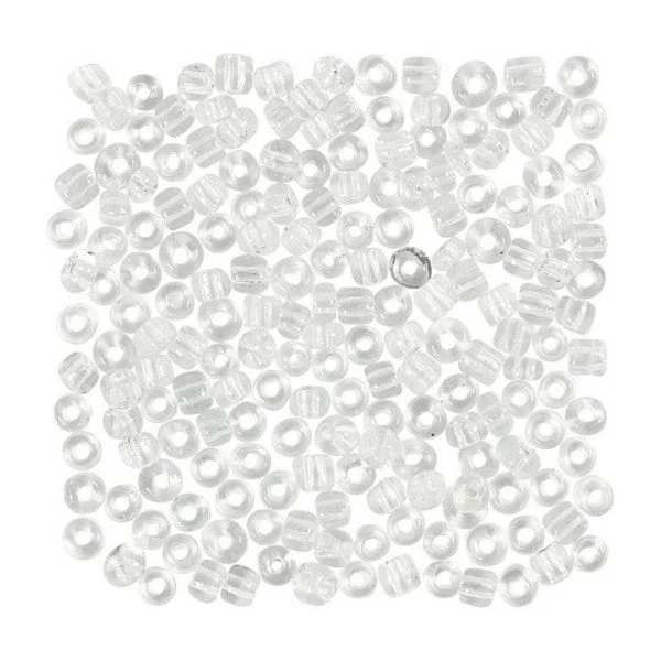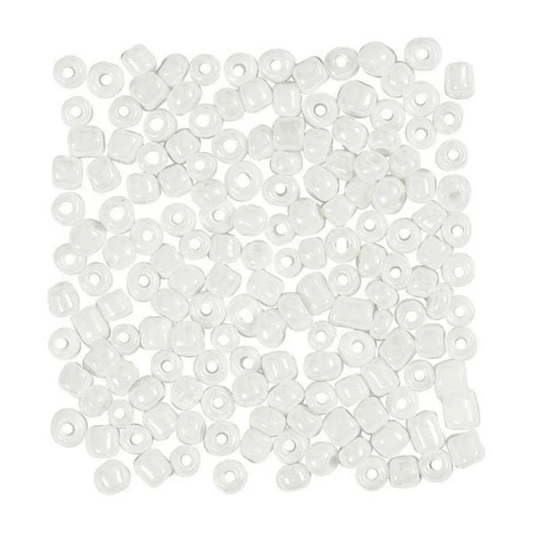 25 g runde og fine glasperler. Perlerne er størrelse 6/0 og har en diameter på 4 mm.