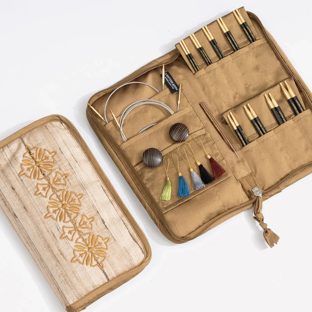 Lantern Moon Ancestry Udskiftbare Rundpindesæt kombinerer elegance og funktionalitet. Med 9 par ebbenpinde og praktisk tilbehør samlet i en smuk Khadi silkekasse, er det perfekt til både hjemmeprojekter og på farten.