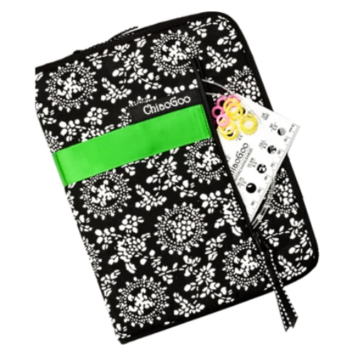 ChiaoGoo Spin Bambus udskiftelige rundpindesæt indeholder 10 cm bambuspinde og fleksible nylonkabler i forskellige længder. Sættet leveres med praktisk tilbehør og opbevares i et kompakt, lynlås-lukket etui.