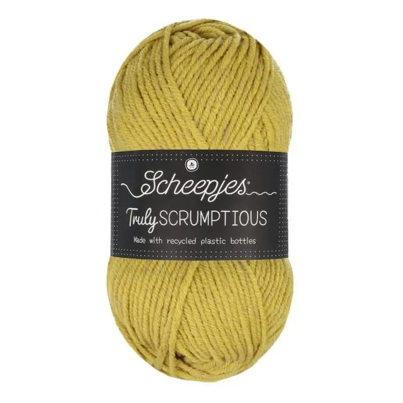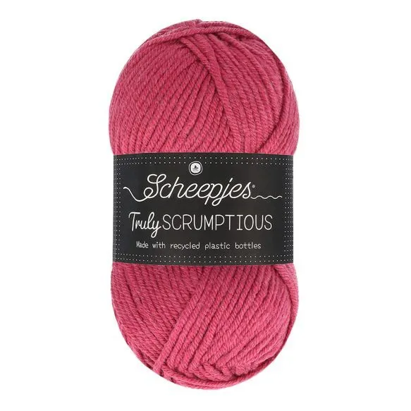 Scheepjes Truly Scrumptious er et mellemtykt og slidstærkt garn, sammensat af 50% akryl og 50% genbrugt polyester. Det er behageligt at have på og nemt at arbejde med, og farvepaletten byder på et bredt udvalg af inspirerende nuancer. Garnet kommer i nøgler á 100 g med en løbelængde på ca 108 meter og passer til pind 5.00 mm. Det kan vaskes i maskine ved 30°C og skal tørres fladt, hvilket gør det praktisk til hverdagsprojekter og børnetøj.