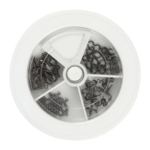 Sættet indeholder 10 karabinlåse, 50 wireklemmer, 20 knudeskjulere, 20 o-ringe og en wire på 5 meter.