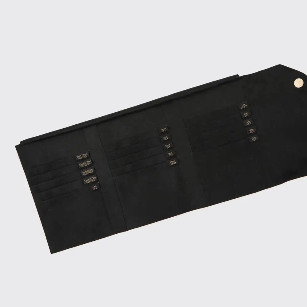 Hold styr på dine rundpinde med KnitPros praktiske etui. Dette elegante og funktionelle etui er designet til at rumme op til 19 faste rundpinde, organiseret i mærkede lommer for nem adgang. Etuiet er tilgængeligt i to farver, beige og sort, og er perfekt til både rejse og opbevaring.