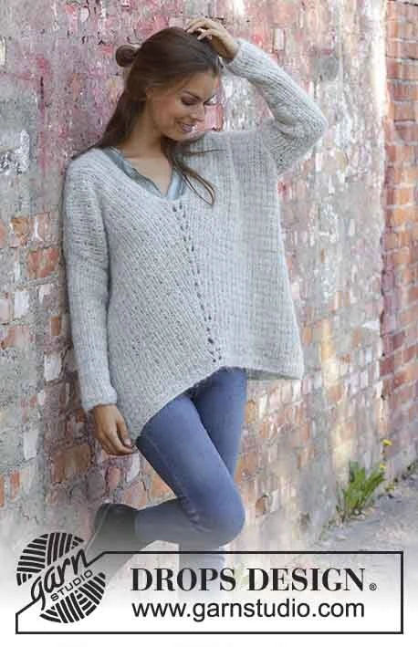 Strikket bluse i DROPS Melody. Arbejdet er strikket med struktur og forskydning på forstykket. Størrelse S - XXXL.