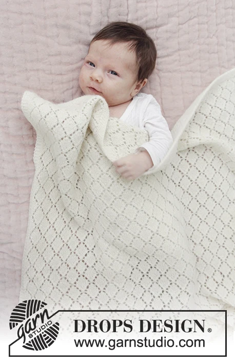 Babytæppe med hulmønster. Arbejdet er strikket i DROPS Baby Merino.