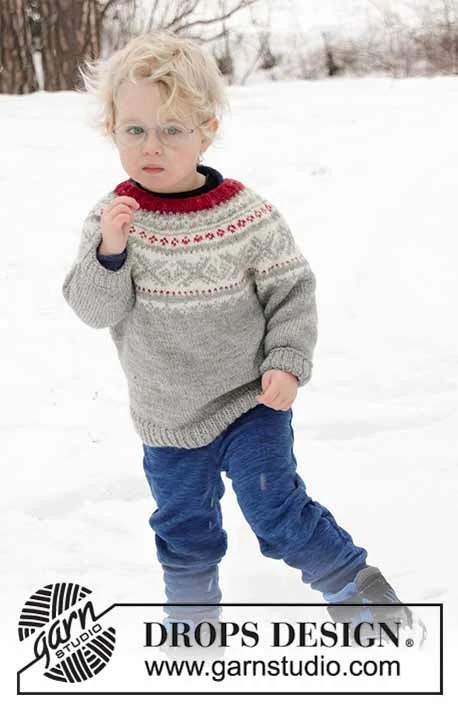 Strikket bluse til barn i DROPS Karisma. Arbejdet er strikket ovenfra og ned med rundt bærestykke og nordisk mønster på bærestykket. Størrelse 2 – 12 år.