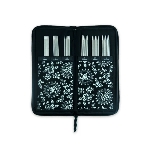 Brug de tyndeste pinde til fine sokker og detaljeret strik, og de tykkere til lune vinterstrømper eller småprojekter. Det kompakte etui gør sættet ideelt at tage med på farten.