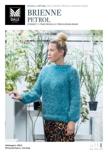 9 m glatstrik med 1 tråd PÅFUGL og 1 tråd ALPAKKA MAGIC på p 12 = 10 cm