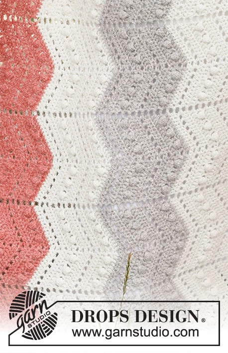 Hæklet tæppe i DROPS Sky. Arbejdet hækles med striber og struktur.