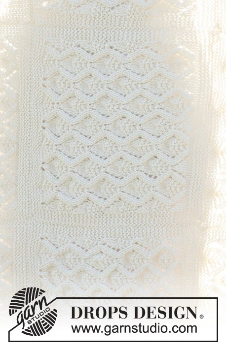 Strikket plaid i DROPS Lima eller DROPS Daisy. Arbejdet strikkes frem og tilbage i ruder med hulmønster.