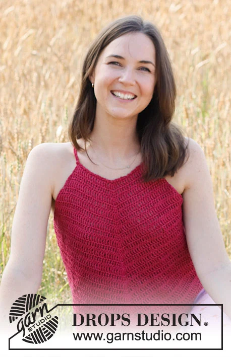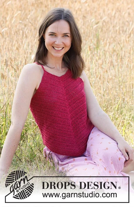Hæklet top i DROPS Belle. Arbejdet hækles ovenfra og ned. Størrelse S - XXXL.