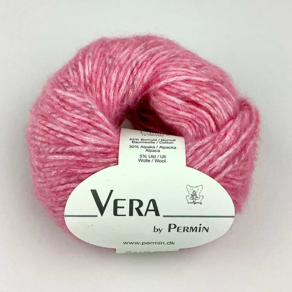 Permin Vera er et chainettegarn fremstillet af naturlige fibre. I dette garn er uld og alpaca nænsomt pustet ind i en kæde af bomuld, hvilket giver en let, blød og elastisk struktur, der føles behagelig mod huden. Det er produceret i Italien med fokus på bæredygtighed, miljø og dyrevelfærd.